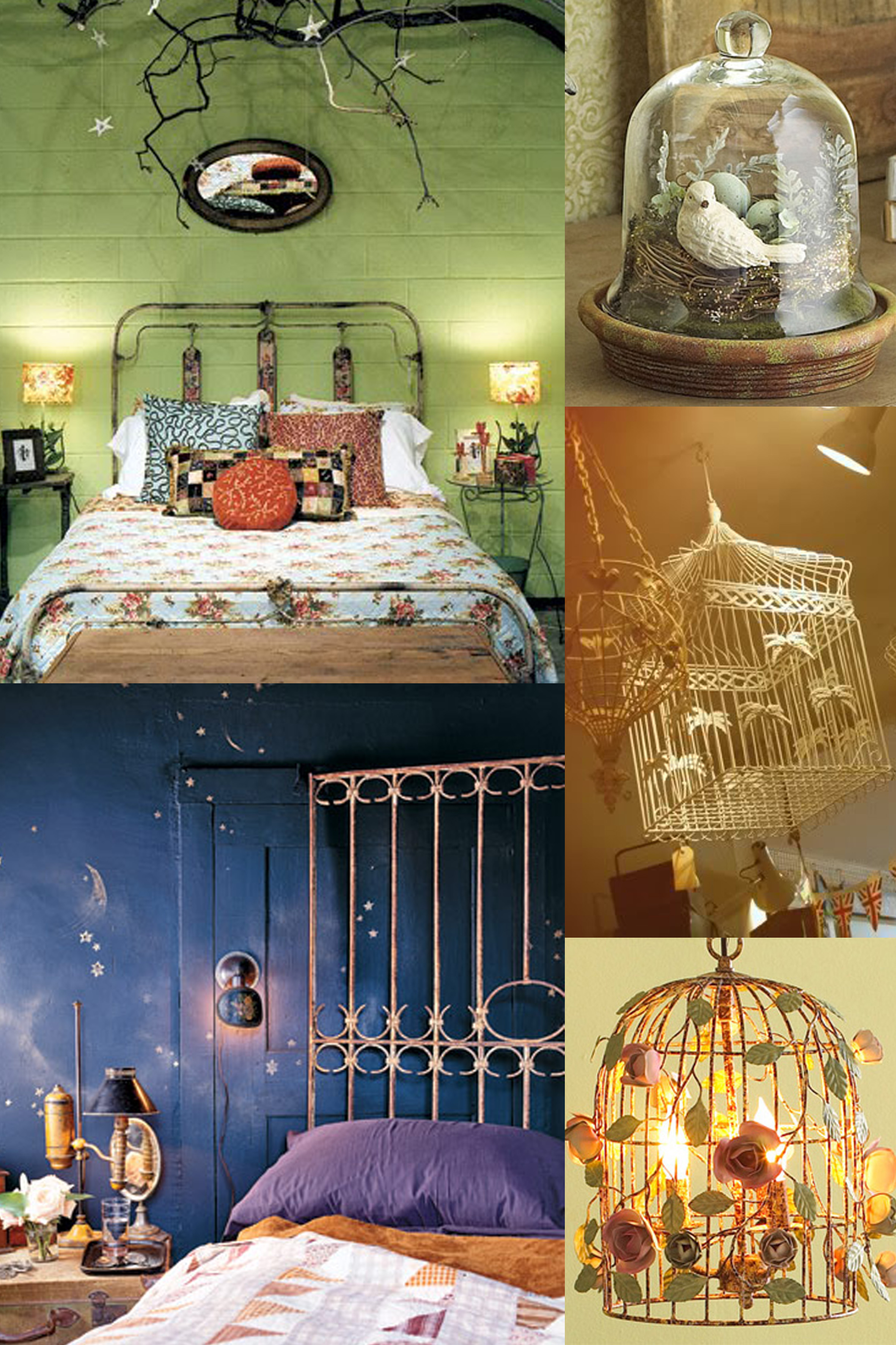 Árvores, gaiolas e estrelas em cima da cama. Eu. que. ro.